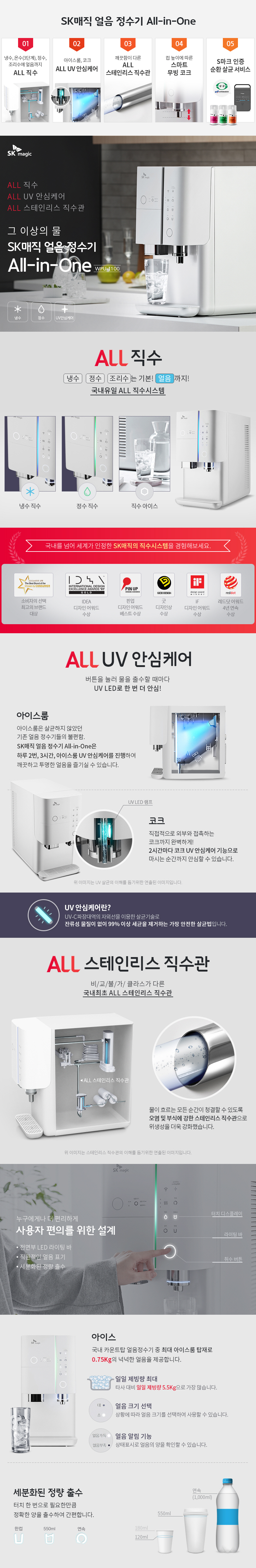 2018년 3월 신제품. ALL 직수형 UV코크 얼음 냉정수기