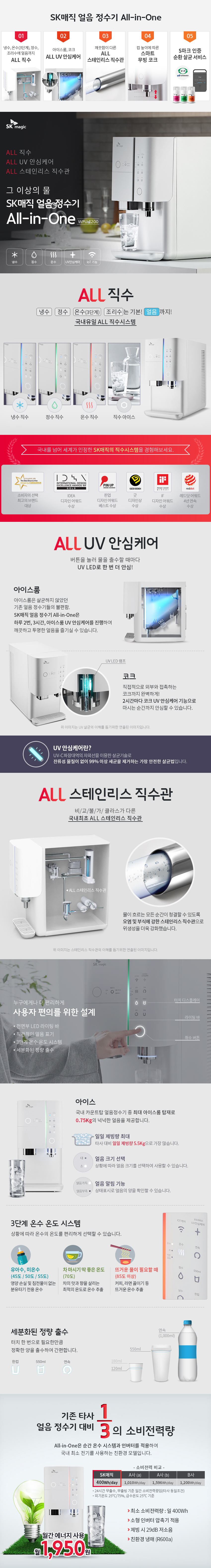 2018년 3월 신제품. ALL 직수형 UV코크 얼음 냉온정수기